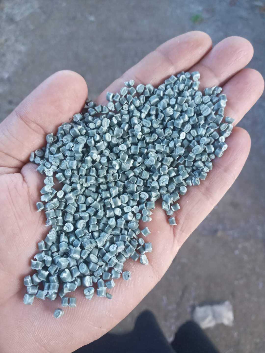 Durable grey polypropylene granules for industrial use.