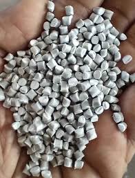 Durable grey polypropylene granules for industrial use.