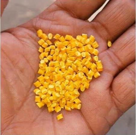 Bright yellow polypropylene granules for decorative and industrial use.